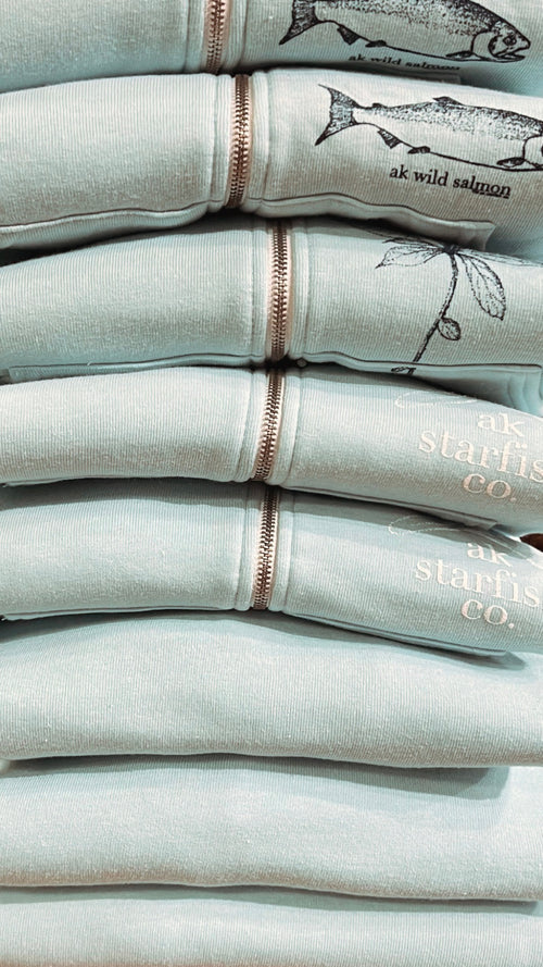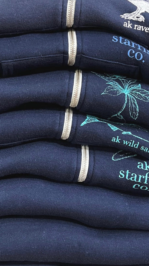 Our 50/50 (Poly/Cotton) blended hoodies are made in the USA of the highest quality material. AK Starfish Co. garments wash beautifully, and our Customers have repeatedly commented on the softness, quality, and excellent wear of our hoodies. We hope you LOVE your new favorite hoody!!