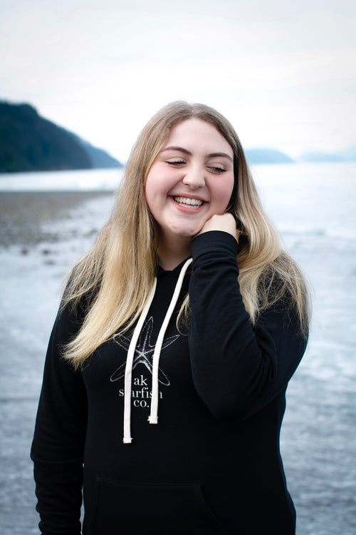 Our Triblend(Poly/Cotton/Rayon) blended hoodies are made in the USA of the highest quality material. AK Starfish Co. garments wash beautifully, and our Customers have repeatedly commented on the softness, quality, and excellent wear of our hoodies. We hope you LOVE your new favorite hoody!!