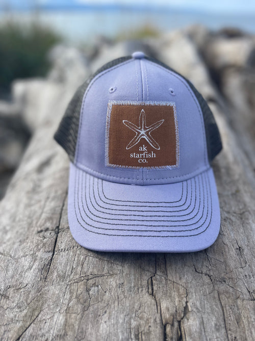 Marine / Heather Grey / White AK Wild Salmon Patch Hat. $38.00