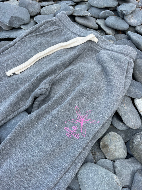 AK Starfish Co. French Terry Blended Joggers are available in Unisex Sizes XS, Small, Medium, Large, XL, and 2XL. These superior joggers are made in the USA of the highest quality French Terry blended material. AK Starfish Co. joggers are exceptionally soft, and they wash and wear beautifully. Pair these with a white tee or with an AK Starfish Co. Crewneck, Zipped or Pullover hoody. We hope you fall in LOVE with your new favorite Joggers!!